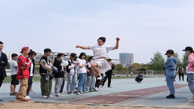 于西操场举办“等理挑战”春日运动会,院本硕各年级学生,预科班学生及辅导员迪丽、邢临川、陈越、安正达共同参与了此次运动会。