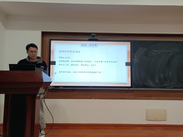 物理網上賭博平台 毕业生马琨傑已签约中国电子科技集团公司第五十五研究所,他以自己的亲身经历面向低年级同学现身说法,介绍了心得体会。首先,在研一时从自己的性格测试情况、兴趣岗位匹配度、专业以及行业前景等多个角度综合考量就业方向,从国防单位、互联网企业、政府及事业单位、自主创业中锁定了国防就业;其次,在研二抓住了每个假期的时间进行实习,介绍了自己先后实习的三个单位及岗位的具体情况以及联系方式;最后,在研三一开学就积极投入的学习面试技巧,了解无领导小组讨论、群面、单面注意事项等。