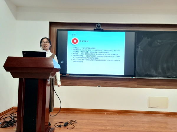 低年级同学认真聆听了学长学姐的经验介绍,并在互动环节主动咨询。主讲毕业生就科研论文写作、假期实习、就业单位组团招聘求职技巧等问题,一一给出了耐心详细的解答和宝贵的建议。
