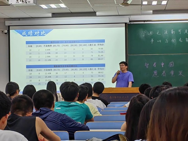 辅导员陈越以近期一门成绩不理想的专业课考试分析开始,从成绩分析、典型问题、要求建议等不同方面,对21级学生的学习情况进行了全面总结,指出同学们现在学习中存在的问题,督促同学们珍惜高考拼搏来的大学学习机会,不辜负自己曾经的拼搏努力,并从自习、听课、诚信考试、安全意识等方面对同学们提出了明确要求。