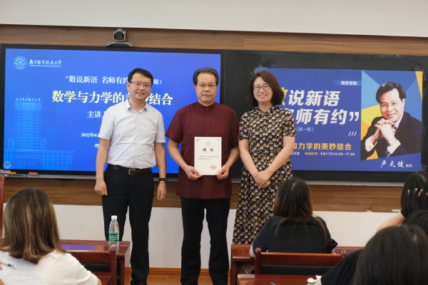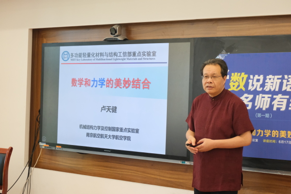 6月17日,澳门网上博彩平台 在理学楼519会议室举办第一期“数说新语,名师有约”讲座交流活动。国家级人才、多功能轻量化材料与结构研究中心主任、航空網上賭博平台 教授卢天健做了题为《数学和力学的美妙结合》的专题讲座。澳门网上博彩平台 党委书记许静、院长王春武、院党委副书记周佼佼、辅导员以及澳门网上博彩平台 、物理網上賭博平台 约40名同学参加活动。活动由周佼佼主持。