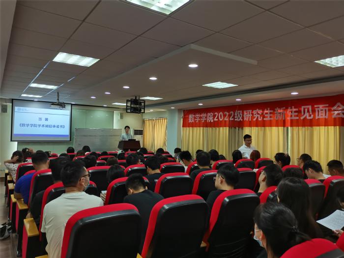 9月5日上午,澳门网上博彩平台 在217报告厅举行了2022级研究生新生见面会。網上賭博平台 党委副书记周佼佼、副院长徐江、计算科学系主任龚荣芳、概率统计系主任蒋辉、数学系副主任周良强,研究生教务员鲁小林,参加了本次会议。会议由研究生辅导员胡诗帆主持。