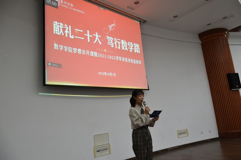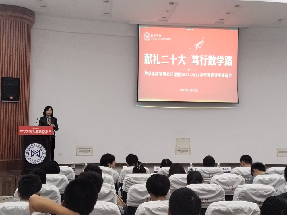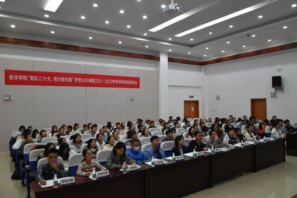 于理学楼报告厅举办“献礼二十大,笃行数学路”梦想公开课暨2021-2022学年评优评奖答辩会,参加此次活动的评审有澳门网上博彩平台