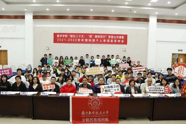 10月13日晚,澳门网上博彩平台 在将军路校区理学楼一楼报告厅和天目湖校区南山苑1栋B1-101两地同步举办少数民族预科班“献礼二十大,‘预’榜样同行”梦想公开课暨2021-2022学年评优评奖答辩会。