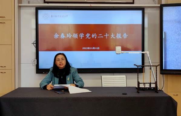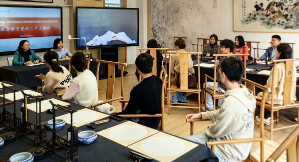 11月11日中午,校工会党支部与澳门网上博彩平台 流体力学数学理论与数值计算创新团队党支部在长空網上賭博平台 7102教室美育工作室共同学习党的二十大报告精神。校工会党支部书记、常务副主席余春玲进行领学,澳门网上博彩平台 党委副书记周佼佼共同参加活动。