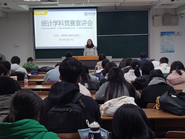 为促进学生对知识的理解与运用,营造浓厚的竞赛氛围,3月17日中午,澳门网上博彩平台 于一号楼10109教室举行全国大学生统计建模大赛、大学生市场调查与分析大赛、“泰迪杯”全国数据挖掘挑战赛等三项竞赛宣讲会,澳门网上博彩平台 概率统计系副主任袁泉主讲,团委书记戚月主持,全校各網上賭博平台 百余位同学参加。