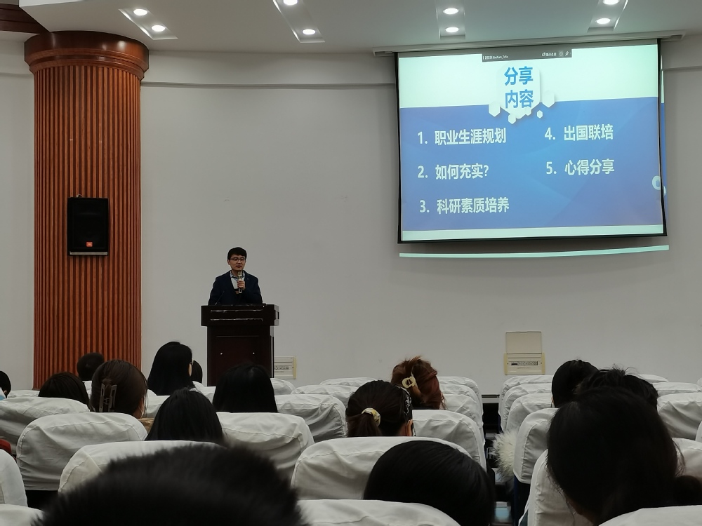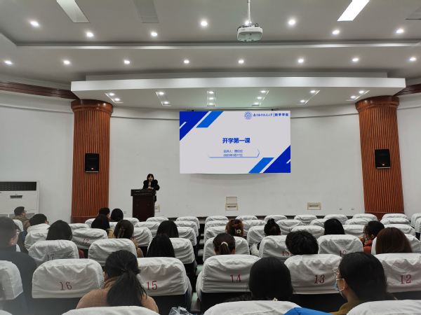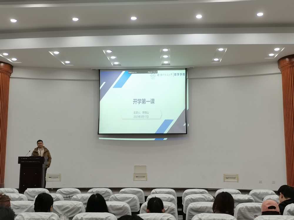 3月17日,澳门网上博彩平台 在理学楼一楼报告厅举办研究生“开学第一课”主题教育活动。活动面向一二年级研究生,由辅导员李明山主讲、优秀研究生榜样王凯分享研究生科研和职业规划心得。院党委副书记周佼佼共同参加活动。