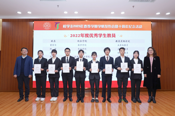 活动中,许静、王春武为校学支2022年度优秀学生教员颁发星级教员证书,朱建军为校学支课程指导教师颁发聘书,孔垂谦为新聘学生教员颁发聘书。