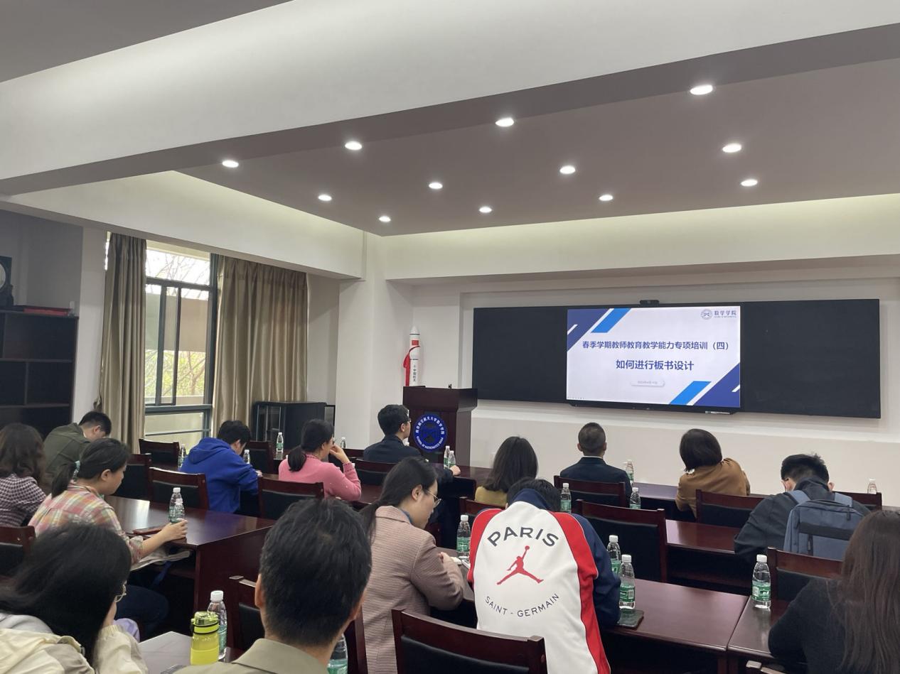 在培训讲座中,孙和军老师结合自身实例,生动富有情感地从大学数学课程教学的背景和问题、大学课堂教学设计原则和方法、教学板书的内涵和意义、数学板书的设计原则和方法等角度分析了大学数学课程的板书设计。