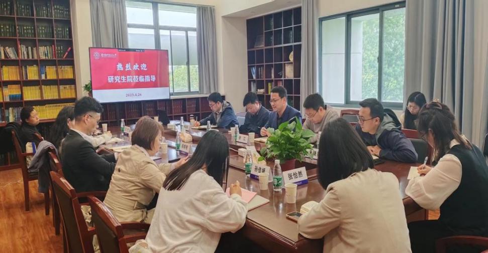 4月26日下午,研究生院郑祥明副院长带队来澳门网上博彩平台 调研交流,召开研究生教育管理工作专题座谈会。澳门网上博彩平台 副院长徐江、各系和中心负责人、研究生教学教务员、学生代表参加了此次调研,会议由徐江主持。
