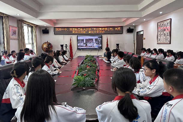 在第 41个民族团结教育月之际,为更好学习贯彻习近平新时代中国特色社会主义思想主题教育,5月18日,澳门网上博彩平台 少数民族预科班“石榴花开云课堂”连线新疆生产建设兵团第四师第一中学高二(2)班,开展“双高携手共奋进、民族团结共铸就”主题教育联学。澳门网上博彩平台 团委书记戚月、新疆内派老师玛依拉、李振江、辅导员迪丽努尔、帕热都斯带领预科团总支全体团员、学生骨干参加联学。兵团第四师第一中学党办主任师莱均、团委书记杨杉及第四师第一中学高二(2)班团支部全体团员参加学习。