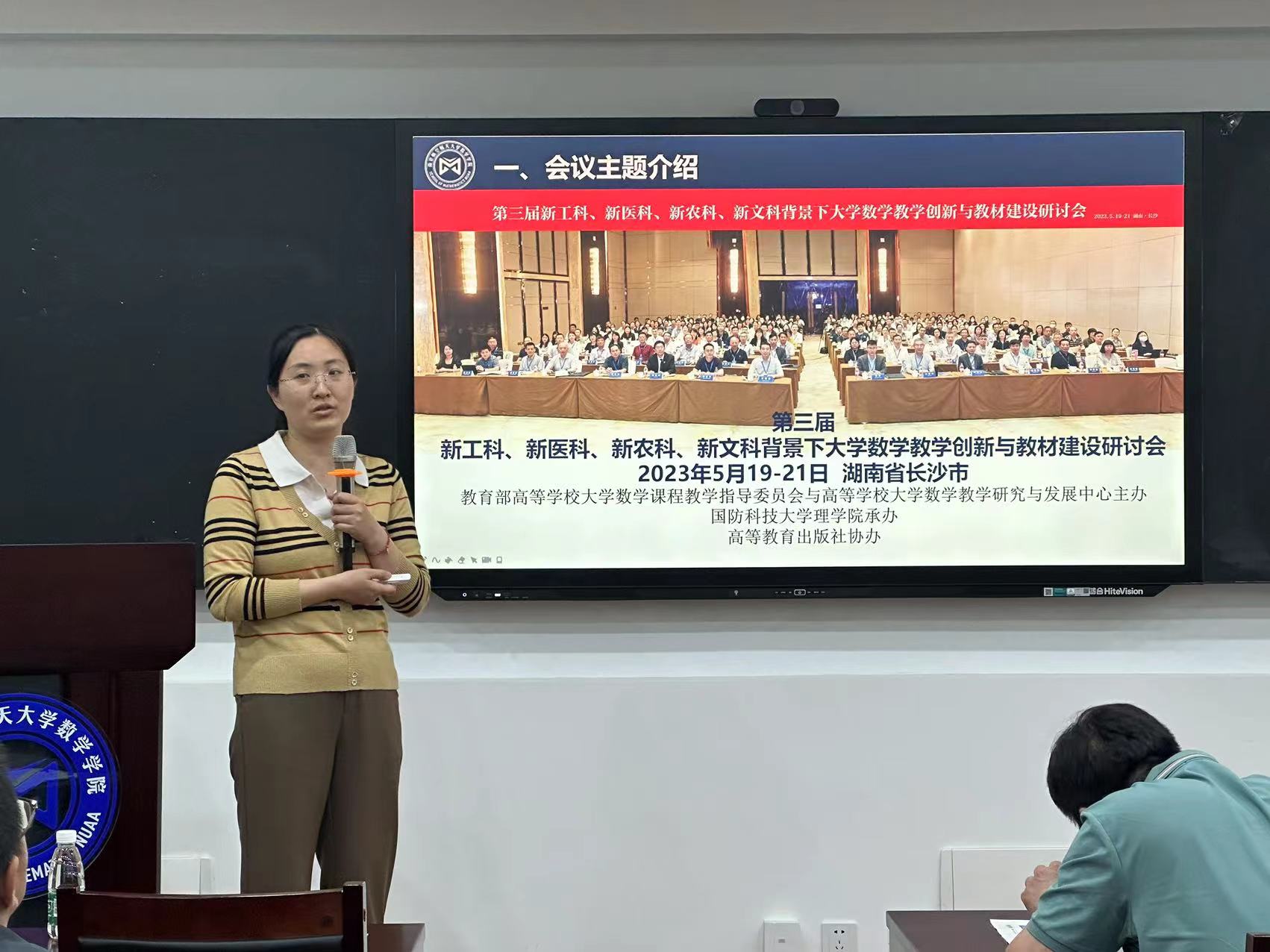 吴健老师分享了在第三届“四新”背景下大学数学教学创新与教材建设研讨会上各高校的一流课程建设、课程思政建设及新形态教材建设经验。她认为如何开展数学课程教学改革是摆在我们面前的一个现实问题,这对教师的教学工作提出了更高的要求。
