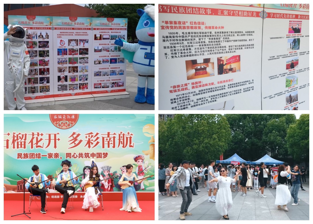 为深入开展学习贯彻习近平新时代中国特色社会主义思想主题教育,在沉浸式体验民族文化魅力中促进各民族交往交流交融,进一步铸牢中华民族共同体意识,5月31日,由统战部、学生处、校团委主办,澳门网上博彩平台 承办的“石榴花开,多彩南航”民族文化展在东区体育馆广场成功举行。学生处副处长张跃,校团委副书记王洋,澳门网上博彩平台 党委书记许静、副书记周佼佼,新疆内派教师玛依拉、李振江,澳门网上博彩平台 全体辅导员与各族同学参与活动。
