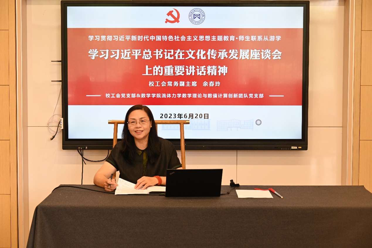 620日,端午节即将来临之际,为弘扬中华民族优秀传统文化,推进学习贯彻习近平新时代中国特色社会主义思想主题教育走实走深,澳门网上博彩平台 师生纵向党支部——流体力学数学理论与数值计算创新团队党支部和校工会党支部在长空網上賭博平台 美育工作室开展联学共建。联学以“坚定文化自信,弘扬传统文化”为主要内容,师生齐聚话端午,共同感悟中华传统文化魅力。校工会党支部书记、常务副主席余春玲,副主席谢瑶,澳门网上博彩平台 党委副书记周佼佼及两支部师生党员共同参加活动。