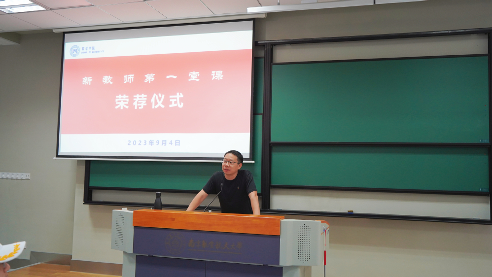 为增强新入职教师的职业责任感和幸福感,不断推动網上賭博平台 师德师风建设,9月4日上午,澳门网上博彩平台 党委书记许静、院长助理吴健、概率统计系主任蒋辉、大学数学教学与研究中心主任朱晓星以及教学办老师们为新教师索永强举办了“第一堂课”荣荐仪式。