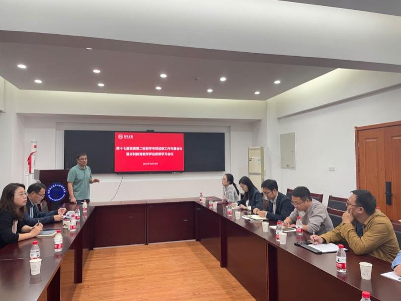 蒋建林介绍了教育教学审核评估工作要点、工作流程和时间节点。蒋建林指出教育教学审核评估对于提高網上賭博平台 教学质量和实现網上賭博平台 发展目标具有重要意义,希望大家高标准、严要求、守底线做好教育教学审核评估工作,并带领大家集体学习了教育教学评估政策相关文件。