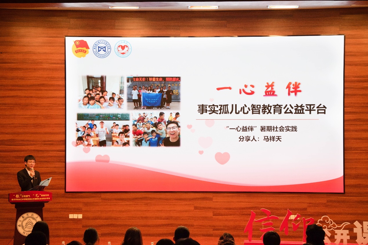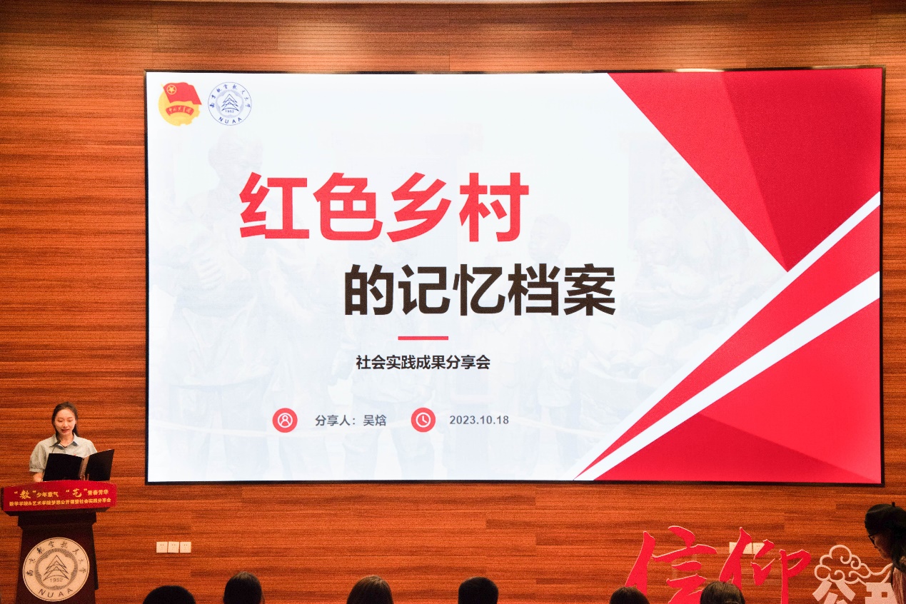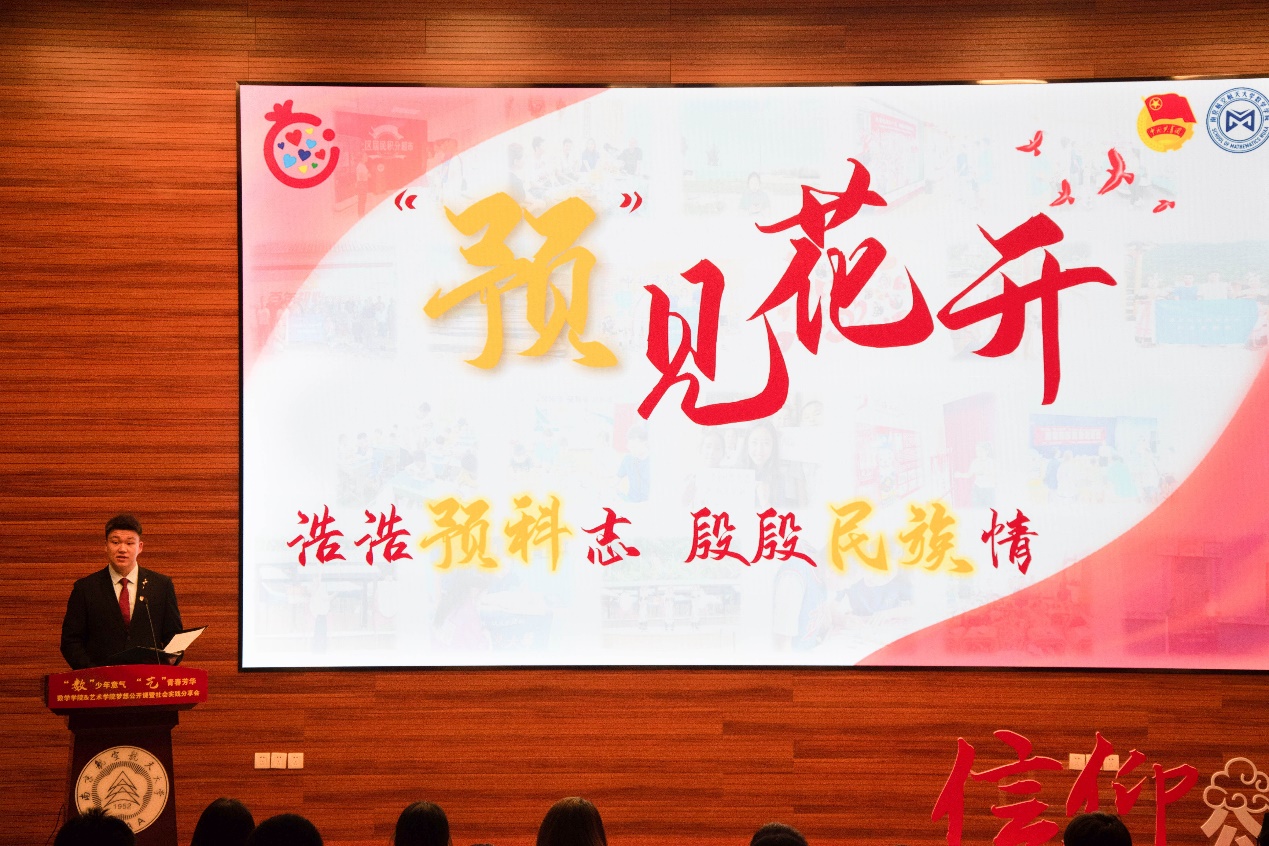 10月18日,澳门网上博彩平台 、艺术網上賭博平台 在一号楼4楼报告厅举办“‘数’少年意气,‘艺’青春芳华”梦想公开课暨2023暑期社会实践成果分享会。校团委副书记王洋,澳门网上博彩平台 党委副书记周佼佼,艺术網上賭博平台 党委副书记王宇宁,两个網上賭博平台 团委书记、专兼职辅导员、社会实践团队以及2023级本科生、预科生参与了此次活动。