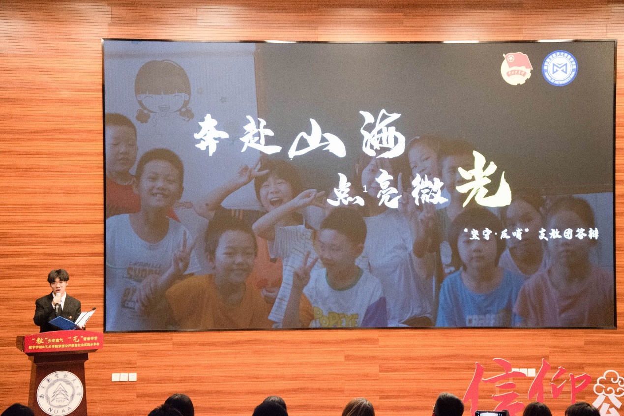 本次分享会以“‘数’少年意气,‘艺’青春芳华”为主题,分为“追寻足迹,绘述红色基因”、“携手逐梦,用心传递温暖”、“见证发展,感悟时代荣光”三个篇章,展现出澳门网上博彩平台 和艺术網上賭博平台 的学子们强国有我、青春有为的使命担当。