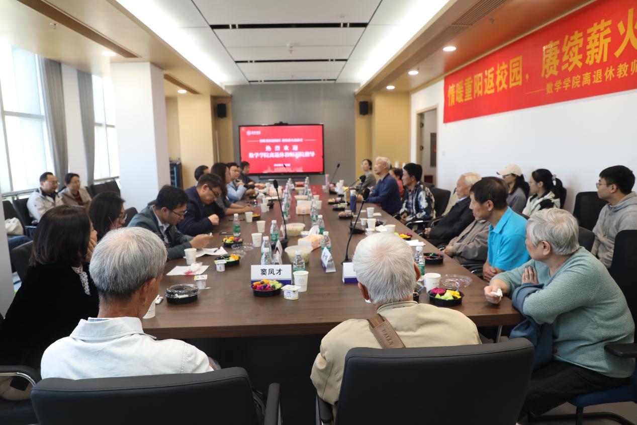 重阳节离退休教师返校座谈会上,院党委书记许静作为主持人对返校的退休老师表示热烈欢迎,并向所有离退休老师送上节日最衷心的问候。院长王春武向离退休教师汇报了新立澳门网上博彩平台 的办学成果和未来规划,他表示,我们都是新时代的数学追梦人,相信在各位老教师的辛勤耕耘、新数院人的接续奋斗下,澳门网上博彩平台 将踔厉奋发,勇毅前行,奋力开创網上賭博平台 高质量发展的新局面。