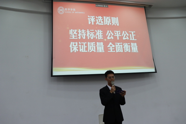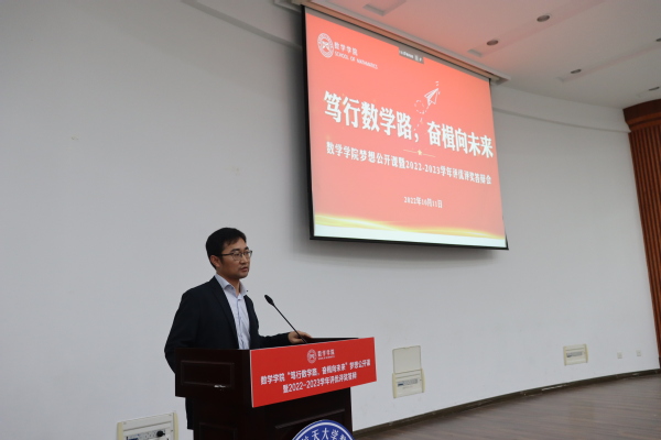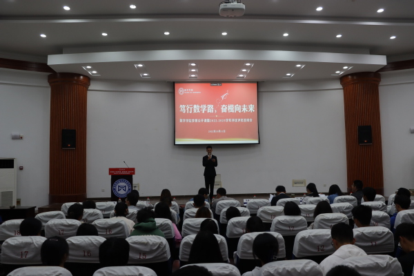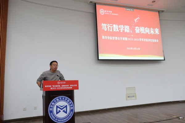 为了充分发挥榜样育人的作用,用身边的榜样激励更多的同学见贤思齐、矢志奋斗,10月11日下午,澳门网上博彩平台 于理学楼报告厅举办“笃行数学路,奋楫向未来”梦想公开课暨2022-2023学年评优评奖答辩会。参加此次活动的评审有澳门网上博彩平台 计算科学系主任龚荣芳,概率统计系主任、0823401班班主任蒋辉,概率统计系副教授陈晓红,0823102班班主任顾燕,团委书记戚月,2020级、2023级辅导员陈越及两名2023级学生代表。活动由網上賭博平台 2023级新生徐瑞霖主持,2023级全体本科生到场学习。