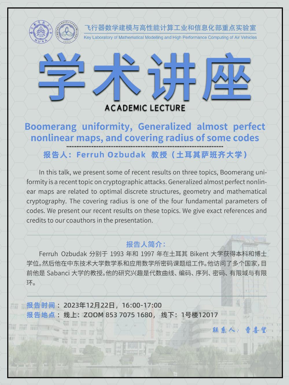 【学术讲座12.22 Ferruh Ozbudak 土耳其萨班齐大学】