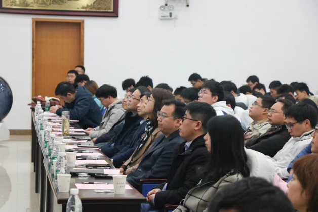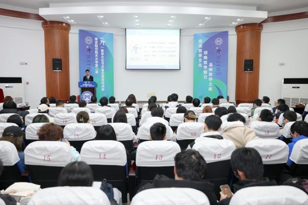 3月14日,澳门网上博彩平台 于理学楼一楼报告厅举办第二届“π”数学文化节开幕式暨首场讲座,共同庆祝第五个国际数学日。国家级教学名师、合肥工业大学教授朱士信,校教务处副处长柯世堂,校团委副书记王洋,学校相关重点实验室、课题组老师,澳门网上博彩平台 党委书记许静、院长王春武、副书记周佼佼、副院长蒋建林,院长助理、各中心系主任及200余名同学参加活动。