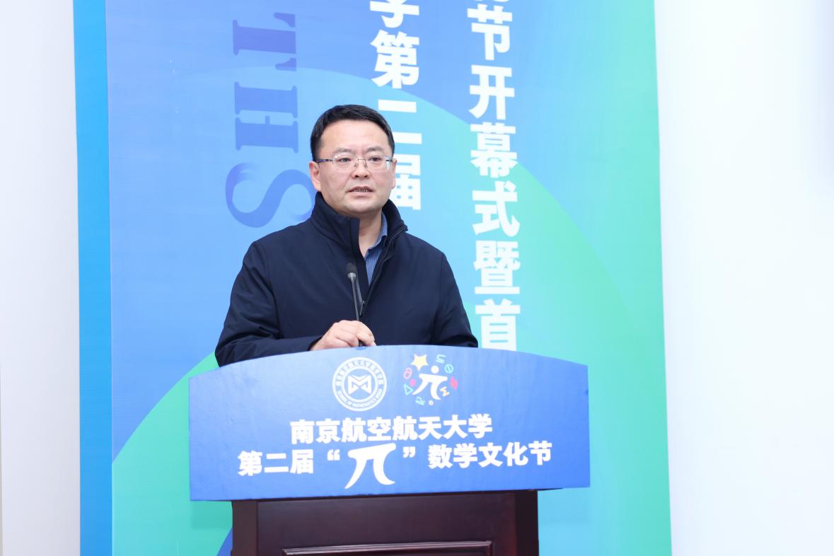 最后,王春武讲话,他希望同学们通过数学文化节能够更加了解数学,理解数学,应用数学,坚定学习信心、勇于实践,探索理工融合,承担起数学人的文化传承和创新使命,以数学为翼,飞得更高更远。