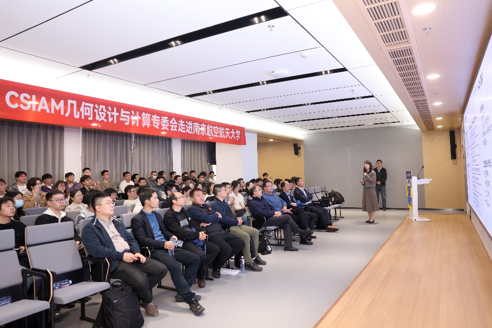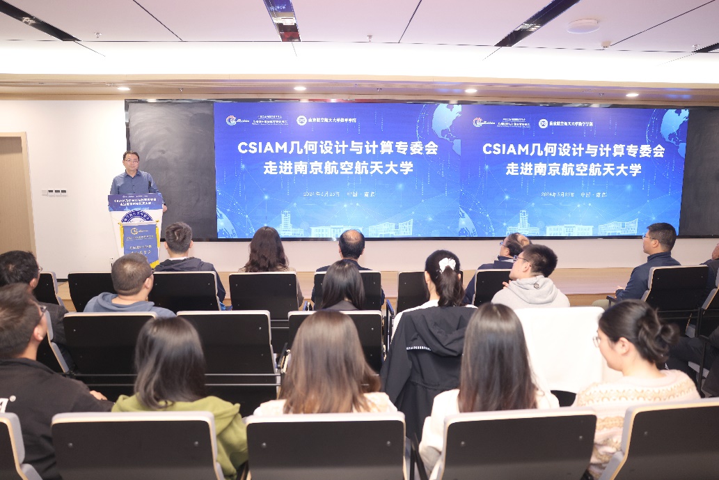 3月23日,“中国工业与应用数学学会(CSIAM)几何设计与计算(GDC)专委会走进高校” 活动在澳门网上博彩平台 1号楼20楼会议室顺利举办。专委会原主任、国家杰青、国家万人计划教学名师、中国科学技术大学陈发来教授,专委会副主任、国家重点研发计划首席科学家、中科院数学与系统科学研究院贾晓红研究员,专委会副主任、广联达科技股份有限公司副总裁李宾博士,专委会副秘书长、中国科学技术大学陈仁杰教授,航空航天结构力学及控制全国重点实验室副主任、南航机电網上賭博平台 汪俊教授,南航计算机網上賭博平台 魏明强教授以及来自中国科学技术大学、西安交通大学、厦门大学、南京理工大学、河海大学、苏州大学、中国船舶集团海舟系统技术有限公司等高校企业的100多位师生员工参加活动。澳门网上博彩平台 院长王春武教授出席活动,活动由澳门网上博彩平台 教师潘茂东主持。
