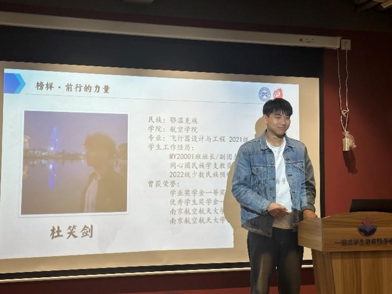 4月10日晚,同心圆民族学支中心开展了“榜样·前行的力量”民族骨干力量工作实操能力提升培训,本次活动由辅导员迪丽主持,曾获“优秀学生干部”的杜笑剑与古丽努尔·阿勒哈担任主讲人,30余名民族学生班委参加了此次培训。