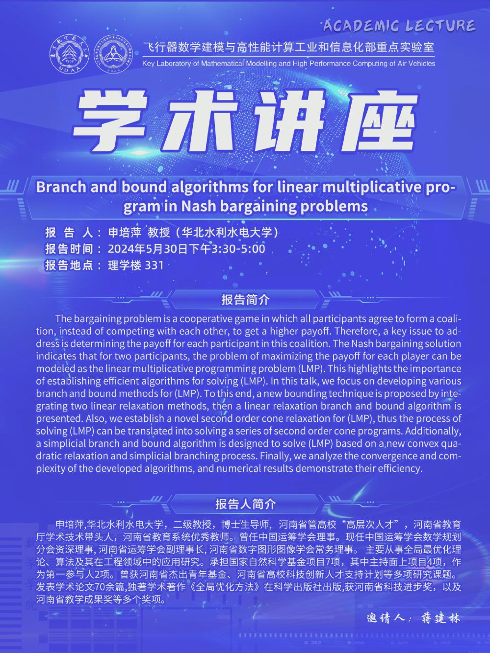 【学术讲座5.30 申培萍 华北水利水电大学】