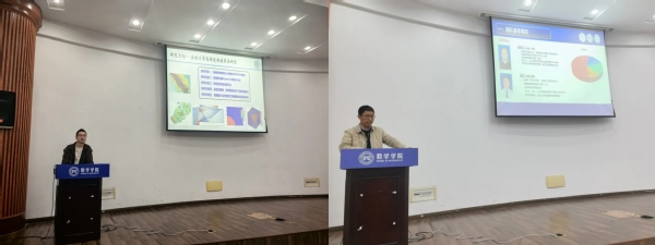 运筹与优化理论、算法与应用团队负责人蒋建林,动力系统、非线性动力学团队负责人周良强,概率统计与随机算法研究团队骨干教师陈晓红,反问题与图像处理团队骨干教师孙春龙,微分方程数值解团队骨干教师王镇明,流体偏微分方程理论与计算团队骨干教师潘星宏,计算几何方向教师潘茂东与流体力学高性能数值算法方向教师胡志成分别从团队情况、研究内容、科研成果、团队优势以及人才培养特色等方面为同学们进行了详细地介绍。