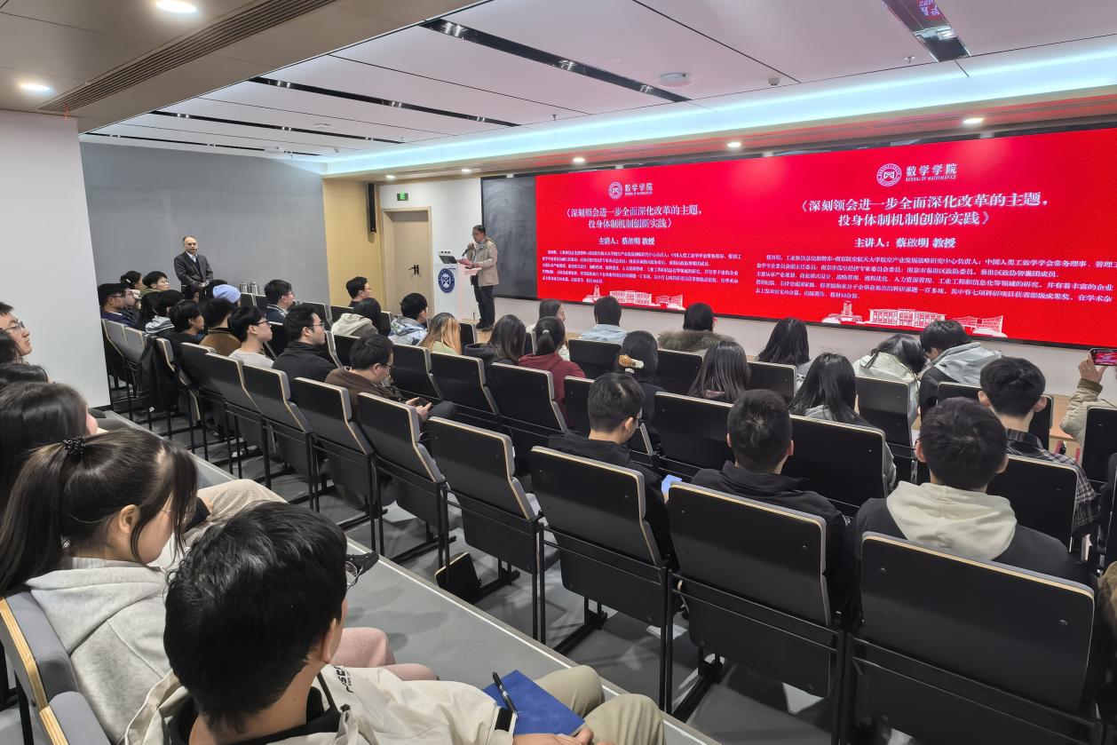 为深入学习贯彻党的二十届三中全会精神,根据校党委统一部署,1119澳门网上博彩平台 举行学习宣传党的二十届三中全会精神校内宣讲团报告会,邀请校内宣讲团成员、经济与管理網上賭博平台 教授蔡啟明作专题辅导报告。網上賭博平台 领导班子成员、师生党员代表近百人参加报告会。报告会由網上賭博平台 副院长龚跃政主持。