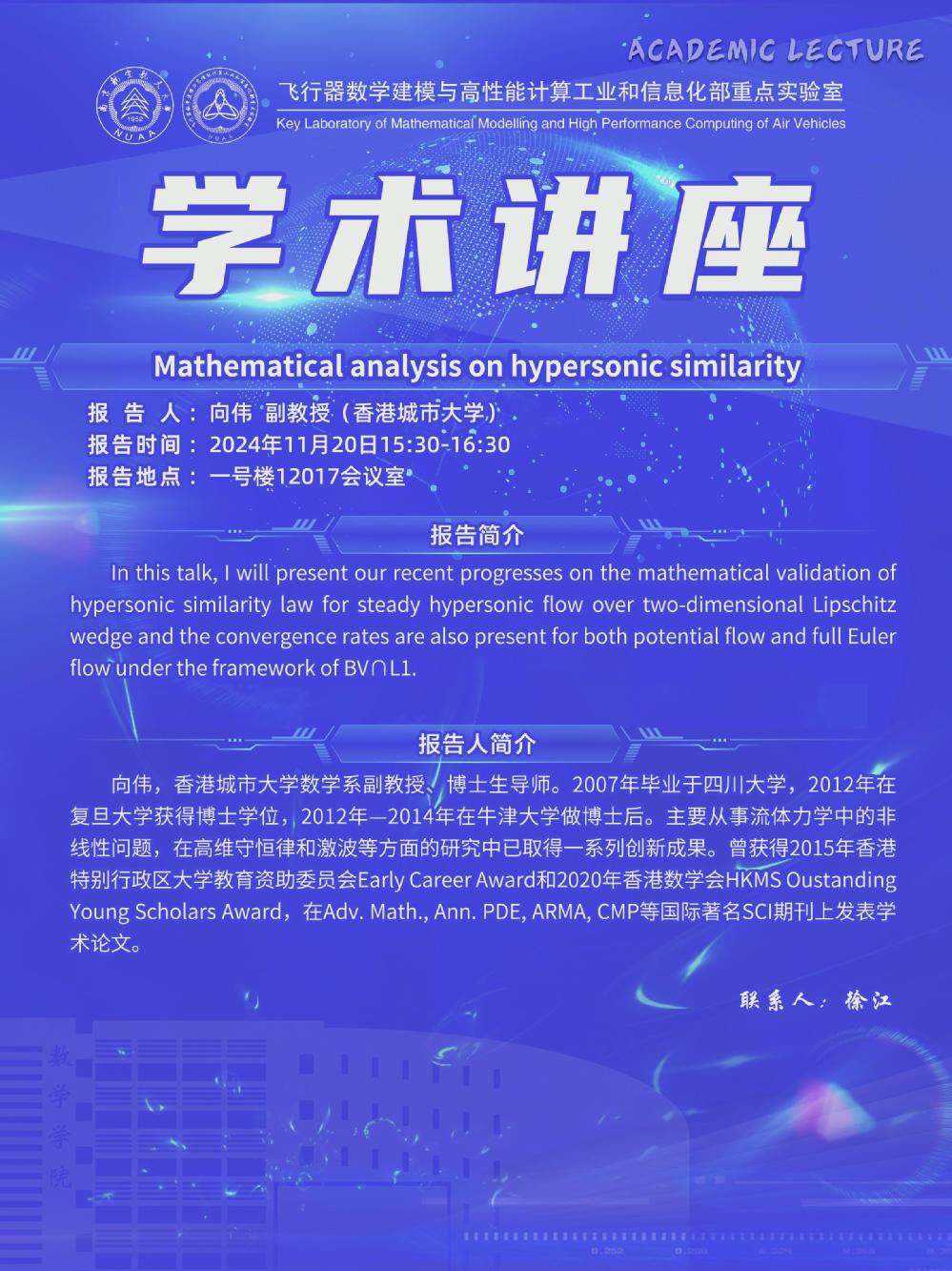 【学术会议11.20 向伟 香港城市大学】