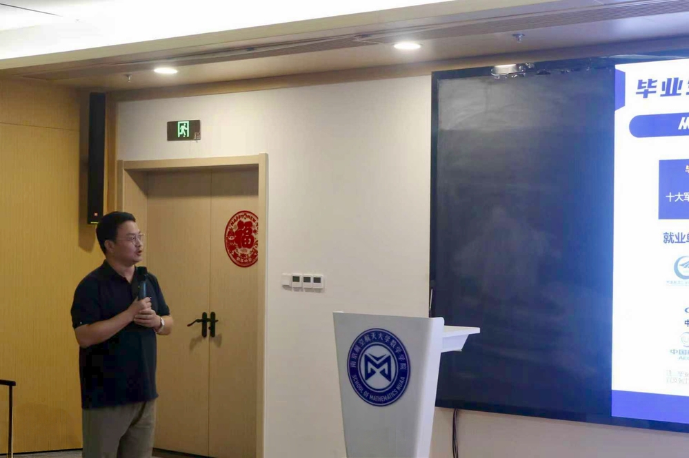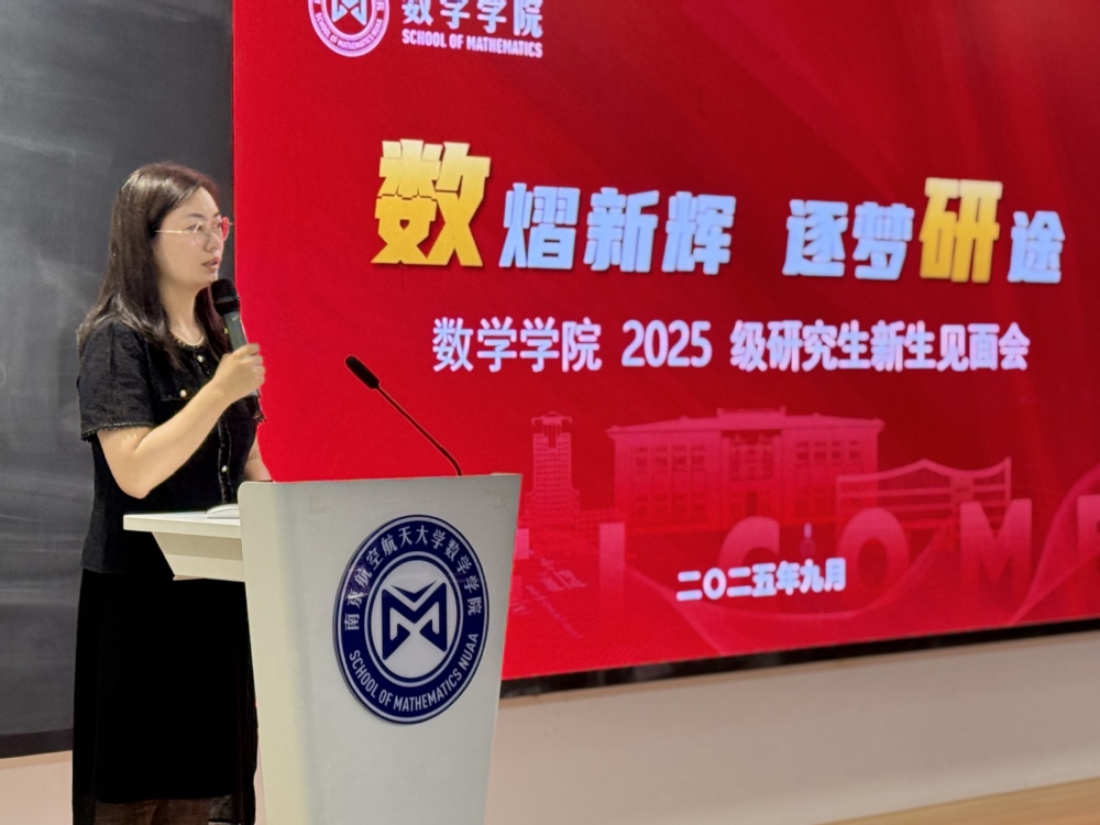 9 月 2日下午,澳门网上博彩平台 在将军路校区主楼12001 报告厅举办“数熠新辉,逐梦研途”2025级研究生新生见面会。網上賭博平台 党委副书记王亚鹏、副院长徐江、数学系主任周良强、计算科学系主任龚荣芳、研究生教务员鲁晓林,以及2025级全体研究生参加会议,紫金山实验室人事部副部长闻然受邀到场为新生讲授研究生开学第一课。会议由網上賭博平台 团委书记、研究生辅导员康怡宁主持。