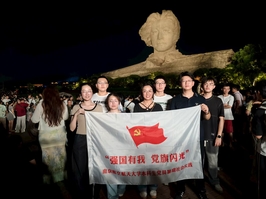 实践的最后一站,团队来到长沙橘子洲头。站在毛泽东青年雕像前,大家齐声诵读《沁园春·长沙》:“恰同学少年,风华正茂……”眼前奔腾的湘江水,仿佛映照着当年青年毛泽东的豪情壮志。